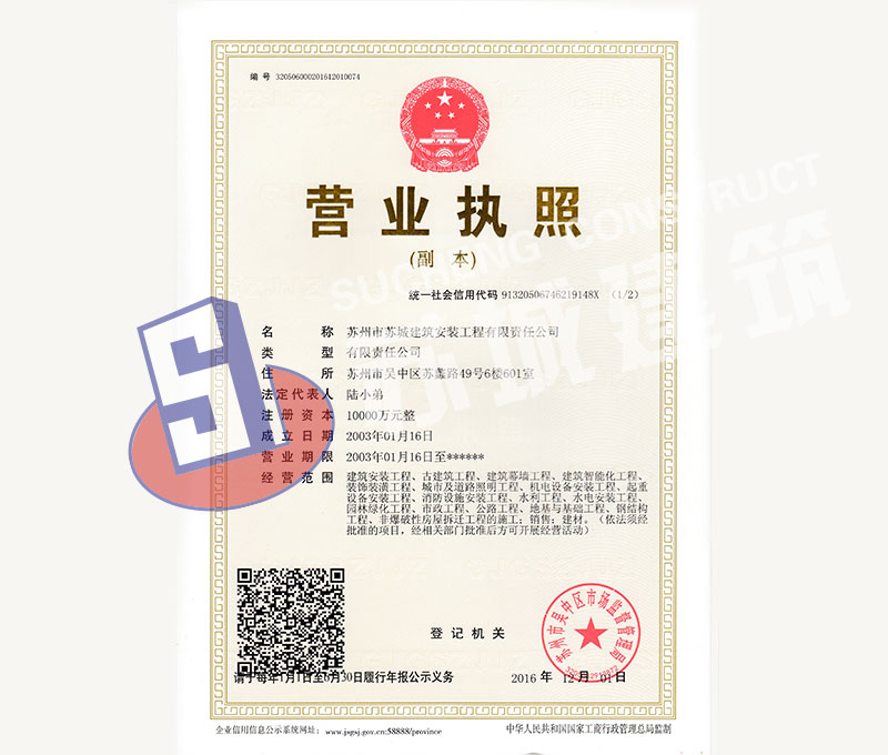 蘇州市蘇城建筑安裝工程有限責任公司是一家建筑業(yè)企業(yè),擁有房屋建筑施工總承包一級資質(zhì),